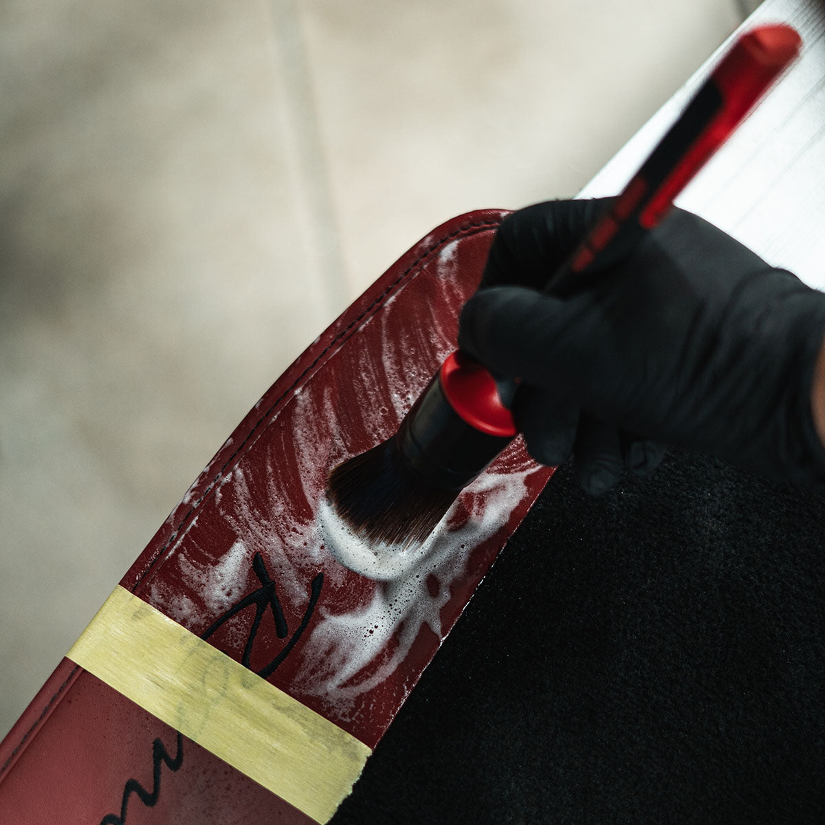For optimal leather care, we at The Art of Car Care recommend using Labocosmetica DÈRMA CLEANER 2.0 regularly for routine cleaning. For deeper dirt, apply the product directly and gently agitate with a soft brush to lift stubborn residues. To enhance protection and maintain leather softness and elasticity, follow each cleaning session with Labocosmetica DÈRMA SEALANT. Regular use ensures lasting care and preserves the natural beauty of your leather surfaces.