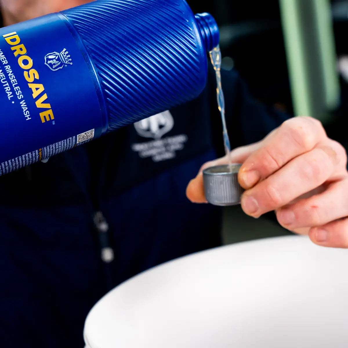 IDROSAVE is an innovative rinseless wash solution formulated with pH neutral surfactants and protective polymers. It lifts and traps light dirt from surfaces safely and effectively, making it perfect for quick maintenance between traditional washes. Its technology reduces the risk of marring while preserving existing waxes, sealants or ceramic coatings.