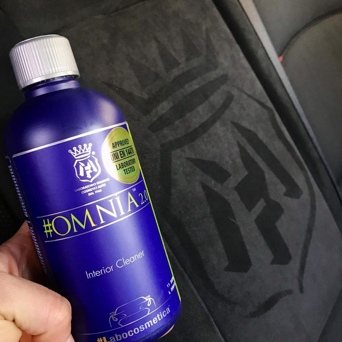Labocosmetica OMNIA 2.0 is the car interior cleaner that rewrites the rules of cleanliness. Born from the fusion of advanced technology and innovation, and recommended by The Art of Car Care, it's designed for detailing professionals, yet perfect for anyone seeking an impeccable result. It offers exceptional cleaning power on all interior surfaces: fabrics, leather, plastic, carpets, and rubber seals. Its delicate yet potent formula removes the most stubborn dirt, leaving surfaces perfectly clean, protected, and with their natural matte finish. With OMNIA 2.0, every detail of the car's cabin shines with a satin finish and certified virucidal action.