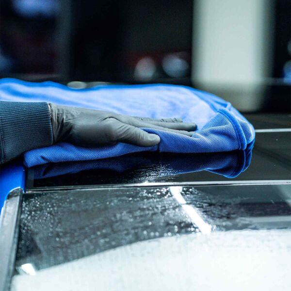 - Wipe with a clean microfiber cloth or proceed with your rinseless or waterless wash.